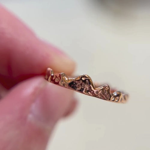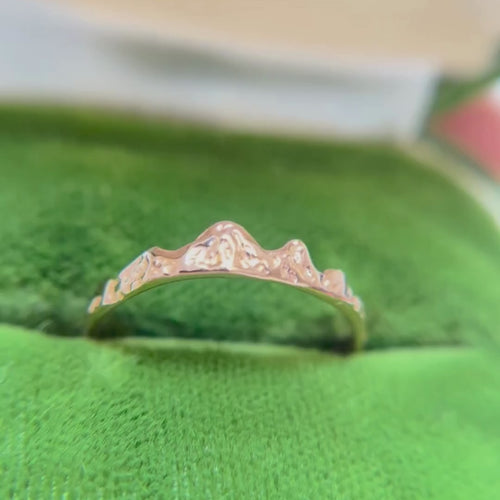 Experimentează măreția munților cu inelul nostru Sequoia. Sculptat manual cu detalii intricate, această verighetă rustică este simbolul perfect al spiritului tău aventuros. Confecționat din aur obținut etic, această comoară fair trade nu doar că arată uimitor, ci și se aliniază valorilor tale. Marginea plată adaugă o notă de modernitate, făcându-l o completare ideală pentru stiva ta unică de bijuterii de mireasă. Fie că spui "Da" sau sărbătorești o aniversare, acest inel montan din aur roz te va purta către peisajele sălbatice și romantice din California. Îmbrățișează natura și poartă-ți dragostea cu mândrie cu inelul nostru Sequoia.